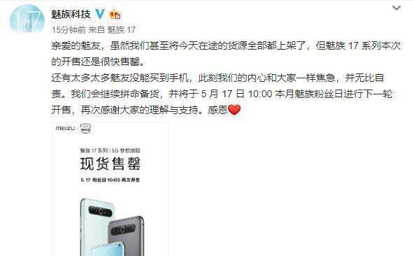 在銷售方面,魅族17系列也展現(xiàn)出了極高的熱度。在第二輪銷售中,現(xiàn)貨很快就被搶購一空。魅族科技對此表示,盡管已經(jīng)將當天在途的貨源全部上架,但仍然無法滿足廣大魅友的需求。魅族科技承諾將繼續(xù)拼命備貨,并計劃于5月17日10:00(本月魅族粉絲日)進行下一輪開售。