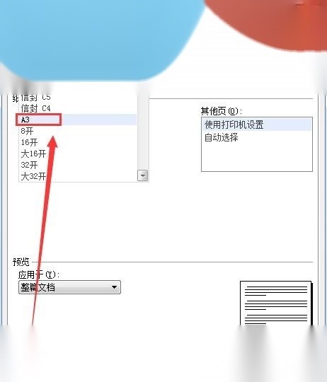 4頁面設置”-“紙張”-“紙張大小”-“A3(297x420毫米)”