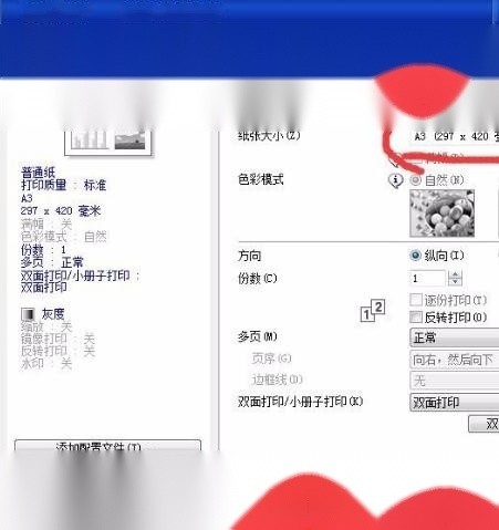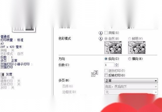 9在屬性里面把打印機的“紙張大小”改成“A3(297x420毫米)”,然后確認。各個打印機的型號不一致,所以保證打印機的紙張大小是A3就行了。還有黑白,彩色等就看你自己想要的效果了。