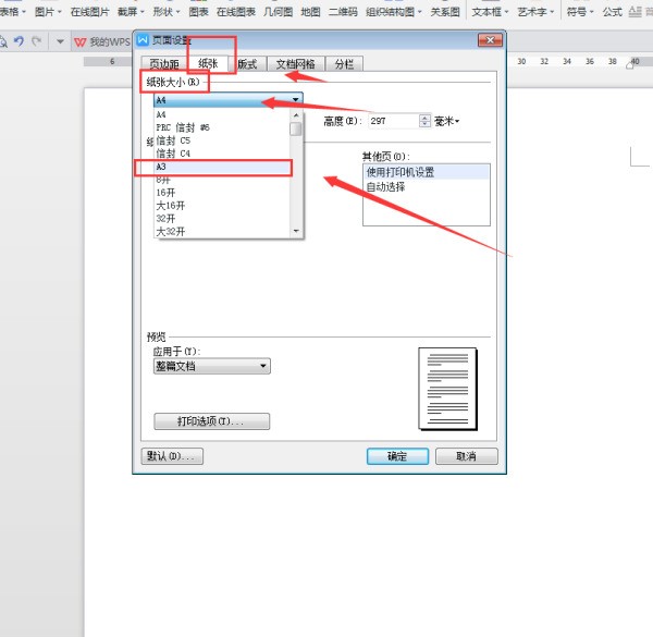 2、進打印界面后能看到,當前文檔設的是A3紙,頁面賊大。