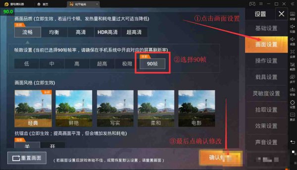 第五步,重新進入游戲,進入畫面設(shè)置,并將幀率調(diào)整為90幀即可。
