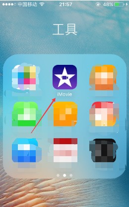 1、首先我們找到6S手機中的自帶軟件iMovie,然后點擊該軟件。