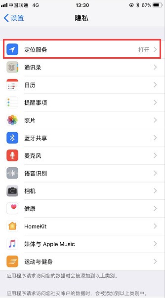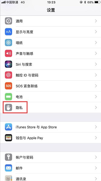 二、進(jìn)入到iPhone 7手機(jī)的設(shè)置界面以后,啟棚漏選擇“隱私”選項(xiàng),如下圖所示。
