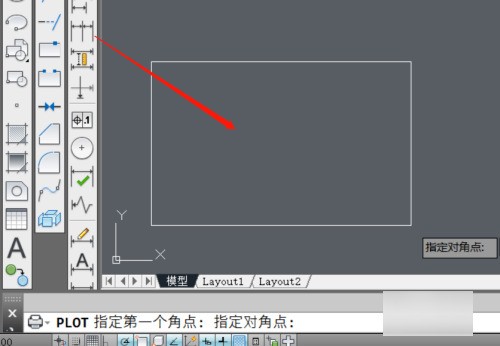 跳轉(zhuǎn)到cad編輯區(qū),選取打印區(qū)域。