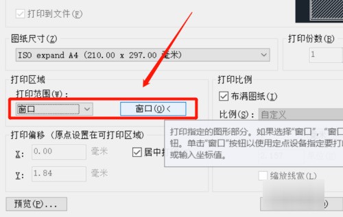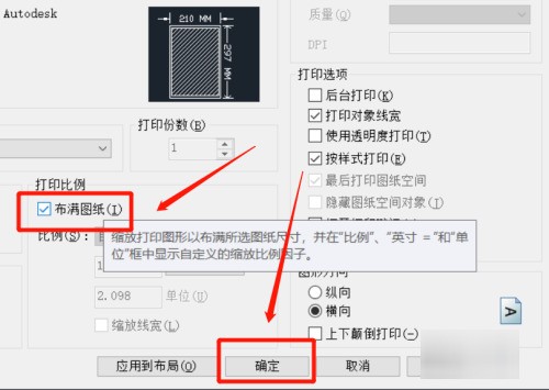 勾選“布滿圖李搭納紙”選項完成打印范圍設(shè)置,點擊確定即可打印圖紙。