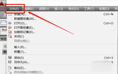 在cad菜單欄中,點開“文件”下拉列表。