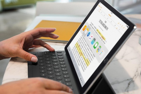 配圖一上,直接亮了!蘋果這次的鍵盤用的是織物材質(zhì),摸著應(yīng)該挺高級,打字手感據(jù)說也賊爽,實(shí)體鍵盤黨狂喜,Surface看了都得抖三抖。