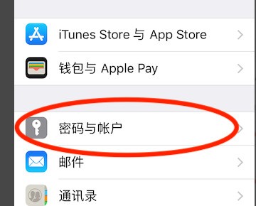2、進(jìn)設(shè)置后往下翻,找到密碼這個(gè)選項(xiàng)(以前叫賬戶與密碼)。