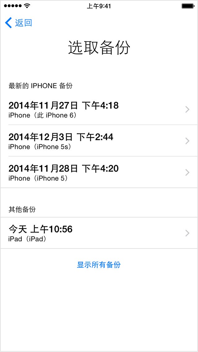 3、重開手機(jī)后,按引導(dǎo)走,在設(shè)置助理里選設(shè)置您的設(shè)備,然后選從備份恢復(fù),記得登錄你的iCloud賬號(hào)??!