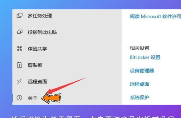 2. 進去后切到關于頁面,底下有個更改產品密鑰或升級Windows,戳它!