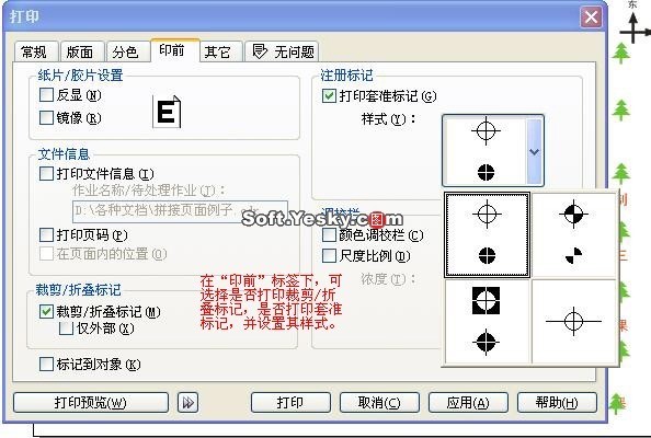 為了便于裁剪,還可以將裁剪標記折疊標記等打印出來。方法是: