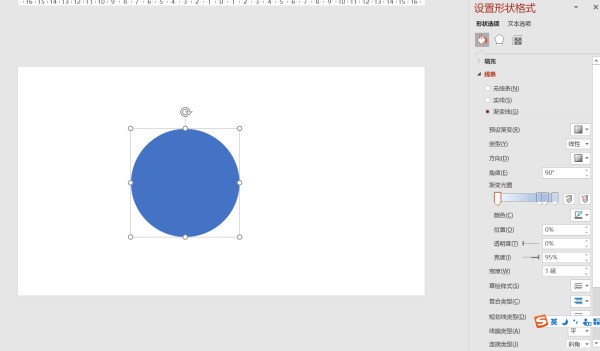選中形狀或圖片后,進入「設置形狀格式」對話框,展開「線條」參數設置部分,將類型設置為「漸變線」:
