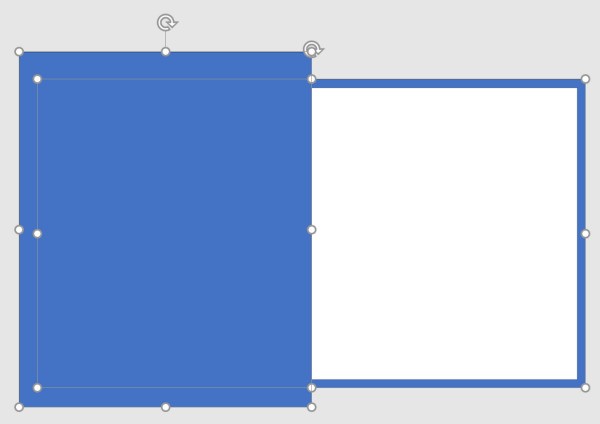 取消掉邊線色,然后繪制一個輔助矩形,使用「合并形狀-拆分」功能,把整個框拆分為兩半。
