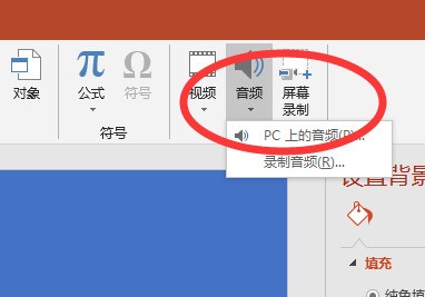 2、然后在插入里面點和爛擊音頻,選擇PC上的音頻,為PPT插入一個聲音。