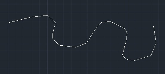 5、在第4步,如果多段線精度值輸入為10,二次回車鍵確認(rèn)后,得到的多段線效果如下圖(可以看到,多段線效果非常接樣條曲線的原始效果)