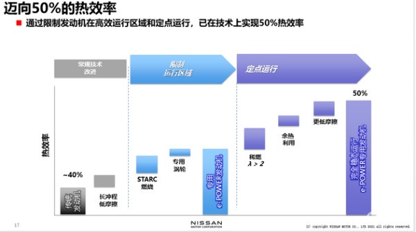 碳減排方面,在上周在的會議上也多少提到了一些。首先e-POWER是一個非常有未來性的系統(tǒng)。系統(tǒng)構(gòu)成上的最大的特點是燃油發(fā)動機和車輪不直接相連,基于這一最大特點,將來包括在燃油車和電動車的發(fā)展上,都有很大的提升空間。上周受時間所限,沒有展開詳細的介紹,今天會再詳細介紹下。