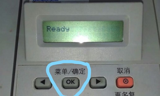2、在打印機設備控制面板上,按Menu/Enter(菜單/輸入)鍵,如下圖所示。