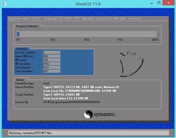 6、完成上述操作后,程序開始釋放系統鏡像文件,安裝ghost win10系統。耐心等待操作完成并自動重啟電腦即可,如下圖所示: