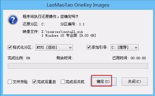 5、隨后會彈出一個詢問框,提示用戶即將開始安裝系統。確認還原分區和映像文件無誤后,點擊“確定”,如下圖所示: