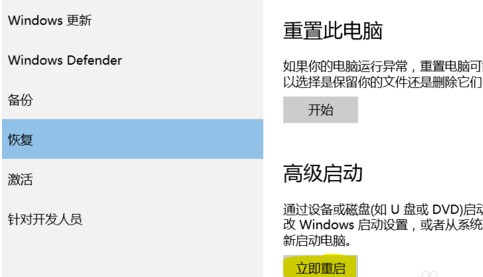 之后選擇“高級啟動“中的“啟動設置”,點擊”重啟“按鈕;