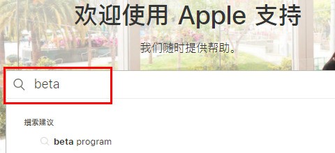1、首先,進入Apple的官方網站,轉到主頁導航架滿又右側的技術支持,然后在來自技術支持搜索框中輸入beta,如下圖所示,然后進入下一步。