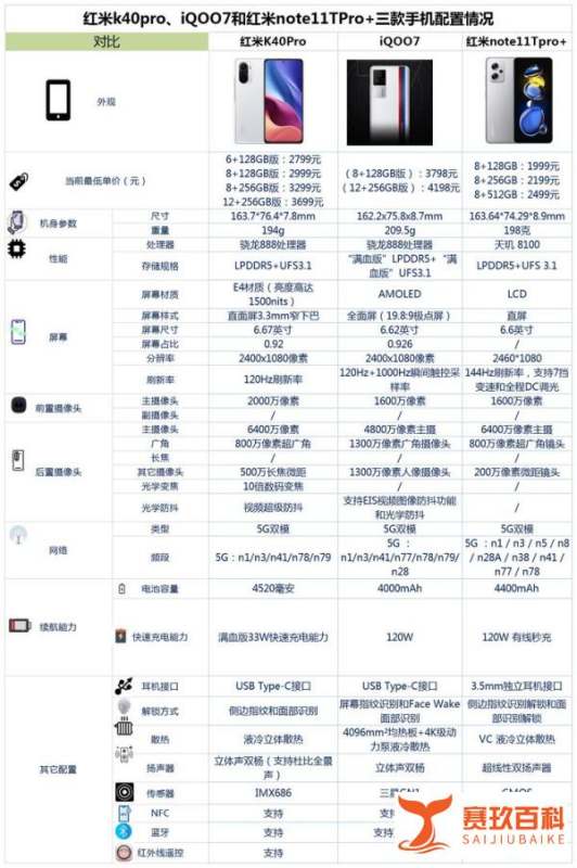 價格紅米note11T Pro+:以8+128GB版本為例,售價為1999元,是三款手機中價格最低的。紅米K40 Pro:同樣版本售價為2099元,略高于紅米note11T Pro+。iQOO 7:8+128GB版本售價為2599元,是三款手機中價格最高的。性能紅米note11T Pro+:采用了“天璣8100+LPDDR5+UFS 3.1”的性能組合。天璣8100處理器在功耗控制和性能表現上均較為出色,能夠滿足大多數用戶的需求。紅米K40 Pro和iQOO 7:均采用了“驍龍888處理器+LPDDR5+UFS 3.1”的性能組合。驍龍888處理器在性能上較為強勁,但功耗控制相對較差,長時間使用或高負載場景下可能會出現發熱問題。屏幕紅米note11T Pro+:采用了一塊144赫茲刷新頻率的LCD材質1080P屏幕。LCD屏幕在護眼方面表現較好,且144赫茲的刷新率能夠提供更流暢的視覺體驗。紅米K40 Pro:采用了120赫茲刷新頻率的E4材質1080P屏幕。E4材質在亮度和色彩表現上較為出色,但護眼效果相對LCD屏幕略遜一籌。iQOO 7:采用了120Hz刷新頻率的AMOLED材質1080P屏幕。AMOLED屏幕在色彩和對比度方面表現優異,但同樣在護眼效果上不如LCD屏幕。耳機接口紅米note11T Pro+:保留了3.5毫米獨立耳機接口,方便用戶使用有線耳機。紅米K40 Pro和iQOO 7:均未保留3.5毫米獨立耳機接口,用戶需要使用無線耳機或轉接頭來連接有線耳機。其他特點紅米note11T Pro+:在續航和充電方面也有不錯的表現,能夠滿足用戶日常使用的需求。紅米K40 Pro:在拍照方面可能有一定的優勢,具體取決于攝像頭的配置和優化。iQOO 7:作為一款游戲手機,可能在游戲性能和散熱方面有更出色的表現。